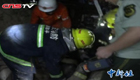 【解說】事發后,附近村民及正在江上作業的漁民立即展開救援。首批到達現場的華安消防大隊華豐中隊消防官兵立即攜帶救援繩索、擔架等救援工具,與附近村民一起,先后將19人成功救上路面。此時,落水客車已沉入江底,被江水淹沒。情況緊急,后續救援力量相繼達到現場展開救援。