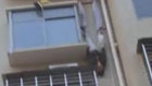 實拍:男子情緒失控 腳系床單倒掛窗外