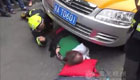 杭州一大媽橫穿馬路被車壓住 路人合力搭救
