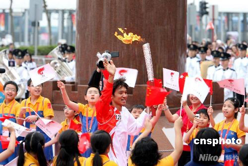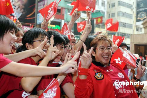 二日上午十時二十五分左右,香港首枚奧運金牌得主、退役帆板運動員李麗珊從香港特首曾蔭權手中接過“祥云”火炬,沿著紅地毯跑出香港文化中心露天廣場,北京奧運圣火在“東方之珠”香港的傳遞正式啟動……