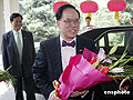 圖:曾蔭權(quán)宣誓就職后喜氣洋洋走出人民大會堂(6月24日15:03)