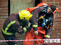 消防人員在事故現場待命