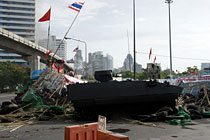 圖:泰軍方用裝甲車突破紅衫軍路障