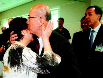 圖:吳伯雄訪問大陸行前深情吻別妻子