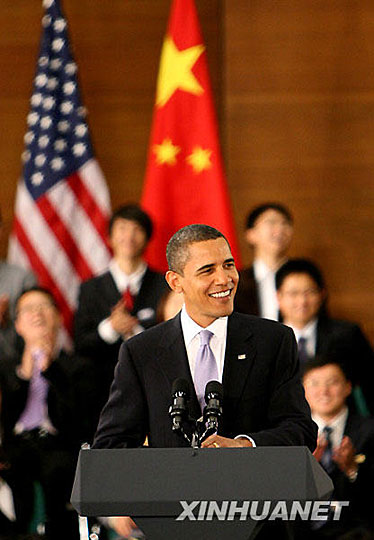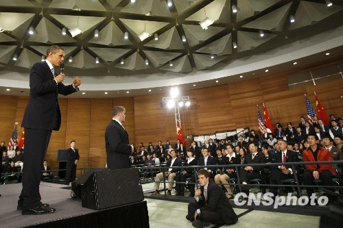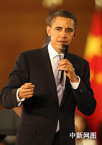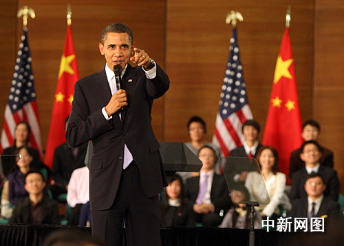 圖:美國總統奧巴馬在上海與中國青年對話