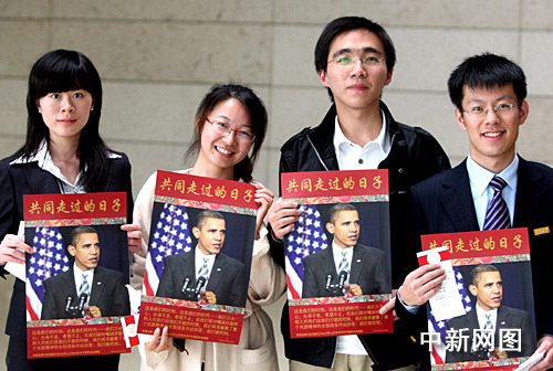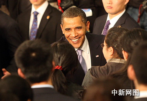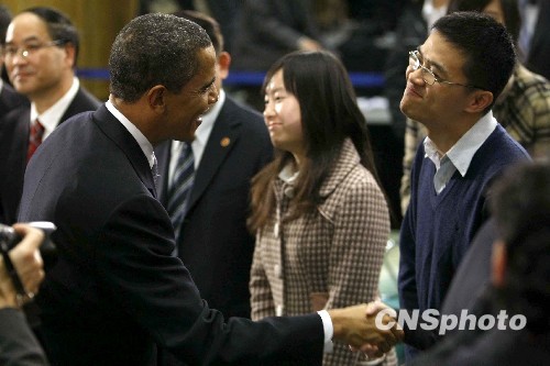 圖:美國總統奧巴馬與中國青年“親密接觸”