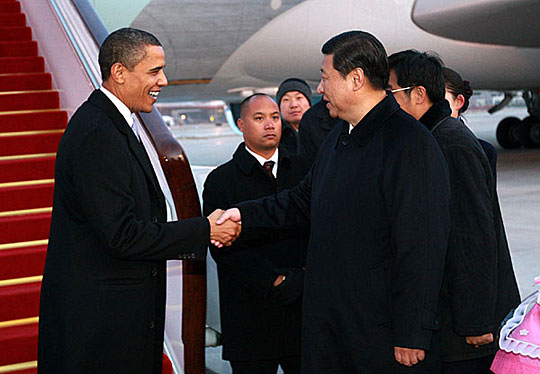 圖:奧巴馬飛抵北京 習近平前往機場迎接