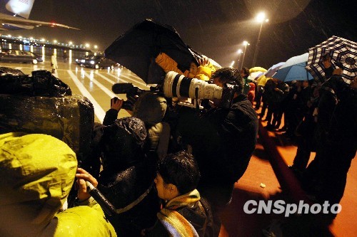 圖:美國總統奧巴馬抵達上海 記者雨中等候