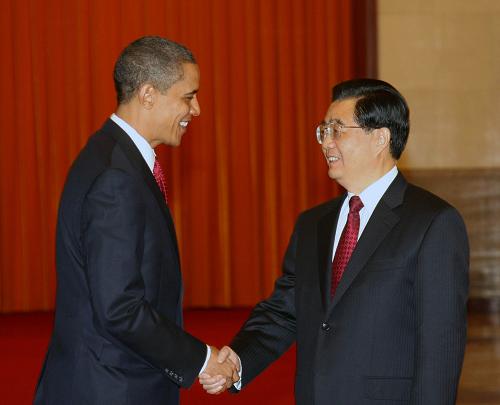 圖:胡錦濤舉行儀式歡迎美國總統奧巴馬訪華
