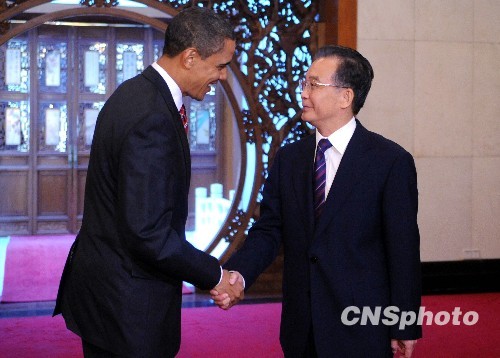 圖:溫家寶總理會見美國總統奧巴馬一行