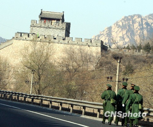 圖:北京警方神槍手在八達嶺長城戒備