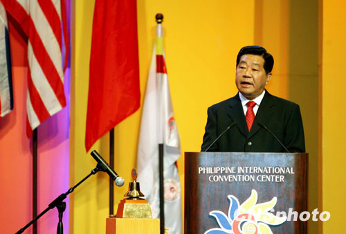 圖:賈慶林在菲律賓出席世界華商大會開幕式