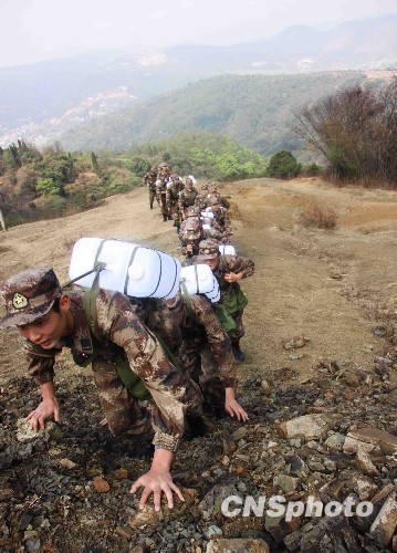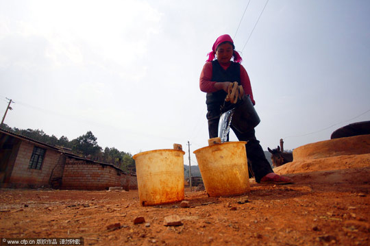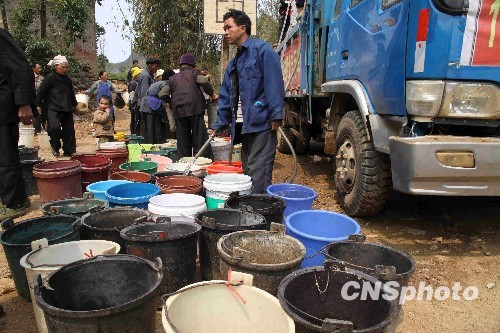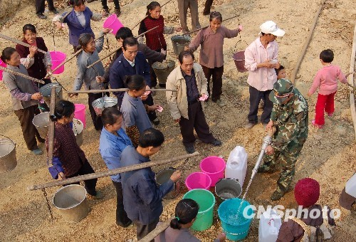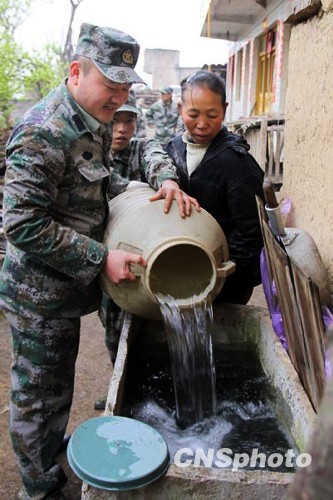 圖:消防官兵為貴州黔西南旱區百姓送水
