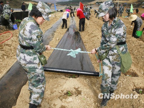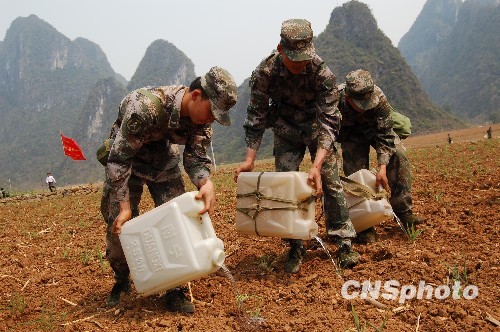 圖:解放軍出動抗旱 軍隊為民眾澆灌禾苗