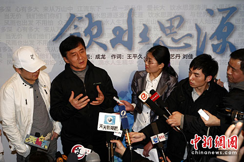 圖:成龍錄制西南抗旱救災之歌《飲水思源》