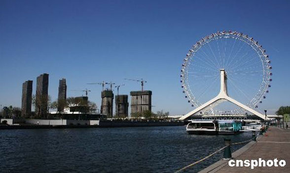 天津之眼即天津永樂橋摩天輪,2007年12月17日正式合龍,使氣勢恢弘的“天津之眼”完全“睜開”,為津城再添一景。永樂橋摩天輪的直徑為110米,到達最高點時,距離地面的高度可達到120米左右,相當于35層樓的高度,能看到方圓40公里以內的景致,是名副其實的“天津之眼”。單從高度角度來看,天津之眼超越了大名鼎鼎的倫敦之眼而躍居世界第一。穩坐于永樂橋之上的天津之眼作為世界上唯一一座建在橋上的摩天輪,其巧奪天工和奇思妙想確是當之無愧的“世界第一”。