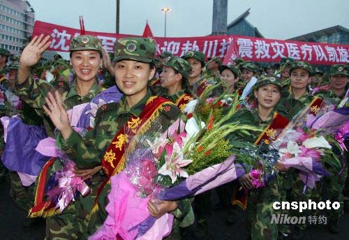 圖:南京軍區空軍工程兵從四川災區凱旋