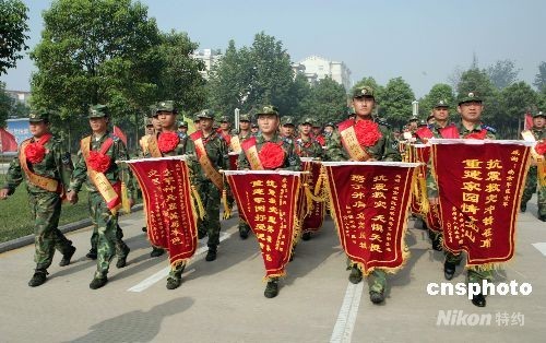 圖:濟南軍區駐許昌某部從抗震前線凱旋