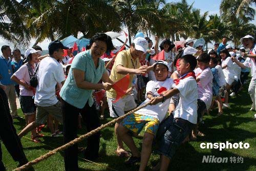 圖:李寧、劉璇等奧運冠軍慰問災區兒童