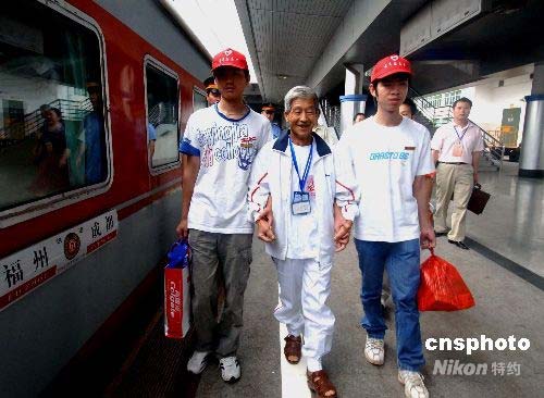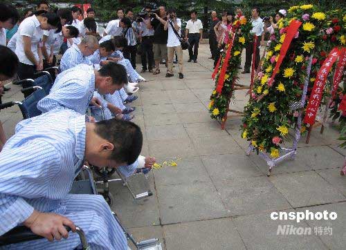 圖:四川傷員感恩離湘 向毛澤東銅像鞠躬