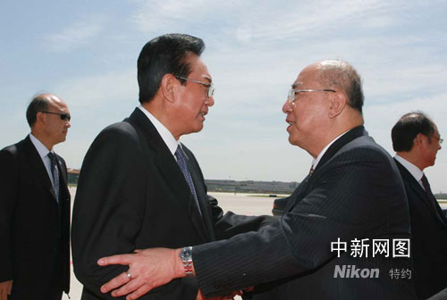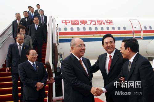 圖:中國國民黨主席吳伯雄一行抵達北京