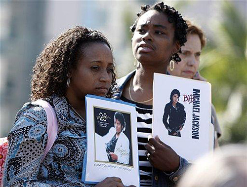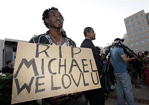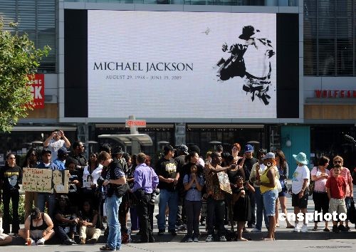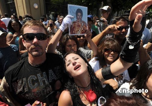 圖:歌迷在追悼會(huì)場外共同悼念邁克爾·杰克遜