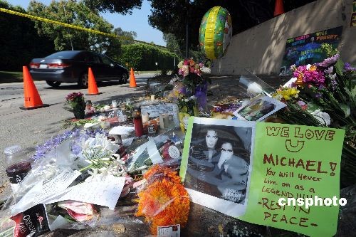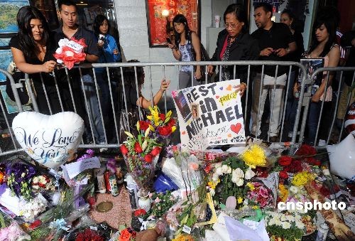 圖:鮮花、蠟燭寄托歌迷對(duì)杰克遜的哀思