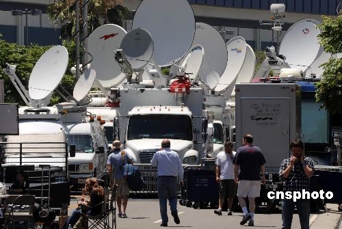追悼會(huì)臨近 媒體衛(wèi)星轉(zhuǎn)播車聚集現(xiàn)場