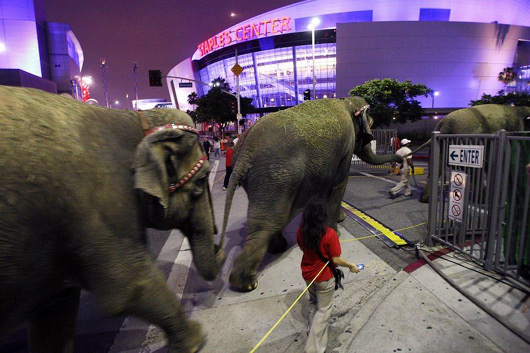 杰克遜公眾追思會(huì):馬戲團(tuán)大象抵達(dá)現(xiàn)場(2)