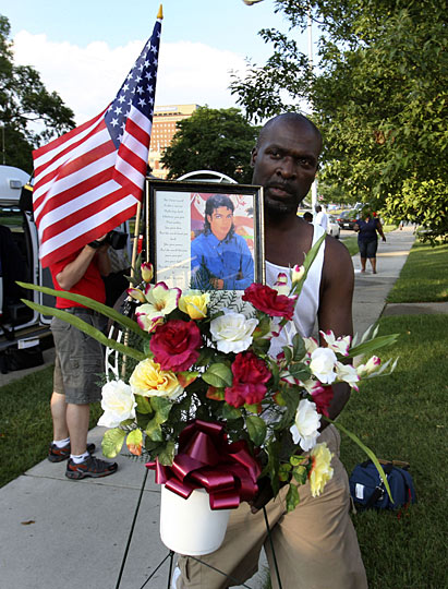 圖:美國歌迷手捧杰克遜的遺像