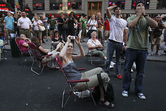 丹麥歌迷在廣場上觀看邁克爾·杰克遜病逝的新聞