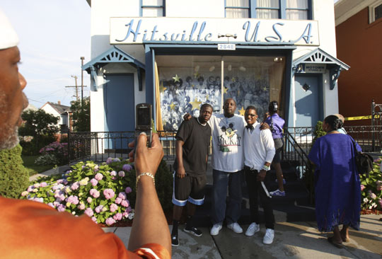 美國底特律歌迷在邁克爾·杰克遜宣傳窗外合影