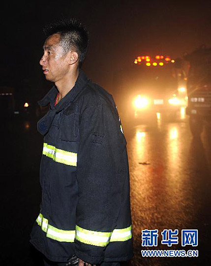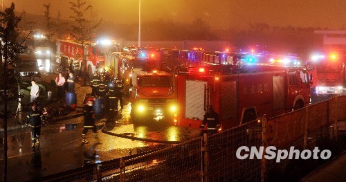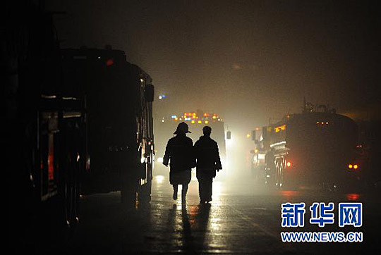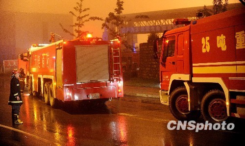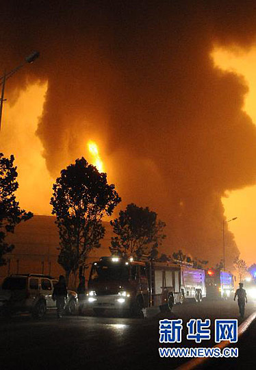 圖:大連新港輸油管道爆炸起火 消防官兵在滅火現場