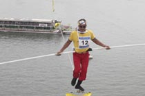 組圖:韓國漢江上舉行高空走鋼絲競速大賽