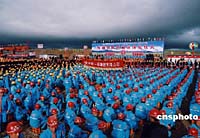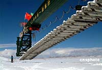 從驚雷翻滾的風火山口,到夏日飛雪的唐古拉山巔,穿過神秘的可可西里無人區,到達圣潔的布達拉宮,一條“鋼鐵天路”綿延1000多公里,在這片曾經人跡罕至的雪域高原上架起又一條惠澤青藏人民的生命線。 青藏鐵路是中國繼三峽工程之后最受世界注目的一項重大工程,也是人類鐵路建設史上最宏偉的工程。它全長1900多公里,是世界上海拔最高、線路最長的高原鐵路。青藏鐵路的全線貫通,意味著西藏終于結束了沒有鐵路的歷史。在被稱為“人類生命的禁區”的地方鋪設青藏鐵路,像是在鋪設一條“天路”,需要強大的科技實力作基礎,需要強大的精神支柱作支撐。青藏鐵路的建設者們靠著這種精神所產生的不竭動力,創造出了人間不曾想像的一項項奇跡。