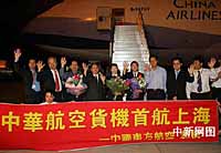 兩岸首班專案貨運包機——臺灣“中華航空公司”CI六九○一航班于二00六年七月二十日凌晨零時三十三分飛抵上海浦東機場。該首航貨機于十九日晚間在臺灣桃園機場起飛,歷經二個半小時航程,抵達上海,機型采用波音七四七—四○○型全貨機。該專案貨機的航線,與此前兩岸春節客運包機的航線相一致,由于仍需繞道飛經香港航管區上空,因此尚非真正意義上的兩岸直航。據了解,本次專案貨運包機搭載的是在滬辦廠的臺商為擴大產能而托運的機械設備和相關器材。業內人士分析,兩岸貨運包機的實現,一定程度上能夠滿足臺商特別是高科技廠商在大陸投資的實際需求,有利于提升這些企業在國際市場上的競爭力。與此同時,這也是兩岸空中通航在原有基礎上又邁出的新一步。