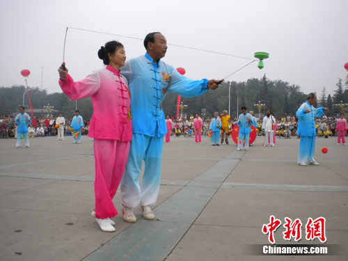 中新網保定8月8日電(呂子豪 李景)8日上午,隨著河北保定人民廣場“千人同時同地抖空竹”大匯演的啟動,該市第二屆全民健身日活動拉開帷幕。