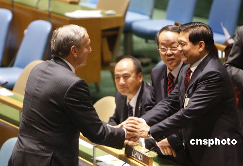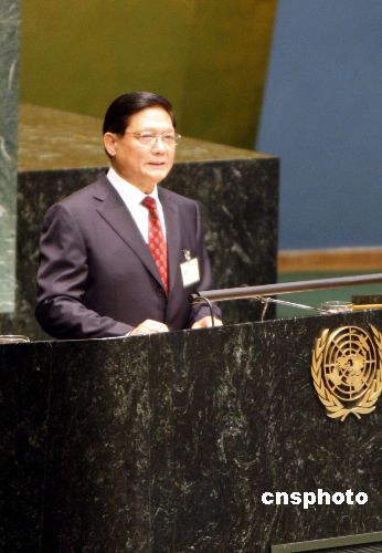 第六十二屆聯合國大會三十一日通過《奧林匹克休戰決議》。中共中央政治局委員、北京市委書記、北京奧組委主席劉淇在大會發言,呼吁通過體育和奧林匹克理想促進世界和平。中新社發 李靜 攝