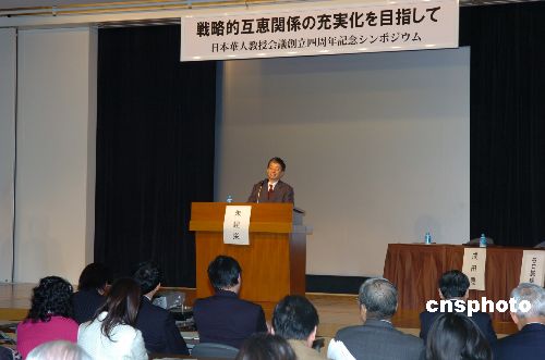 11月2日下午,日本華人教授協會在東京朝日禮堂舉行創建四周年研討會,中國駐日使館崔天凱大使出席并發表基調演講,來自日本政界、商界、學術界、中國駐日使館以及當地媒體相關人士近400人參加。此次研討會的主題為“進一步充實中日戰略互惠關系”。與會專家從政治外交、經濟金融、科學技術和文化教育領域就研討會的主題進行了探討。在基調演講中,崔天凱大使就當前中日關系的發展提出幾點意見。中新社發 滕劍峰 攝