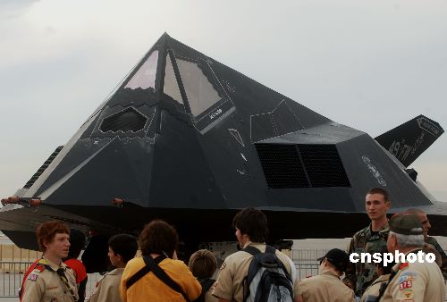 美國(guó)為紀(jì)念六十年前成立空軍,十一月在內(nèi)華達(dá)州的內(nèi)利斯空軍基地舉辦大規(guī)模飛機(jī)展示,民眾前來觀看世界上第一種可正式作戰(zhàn)的隱身戰(zhàn)斗機(jī)F-117A“夜鷹”,它專門用于夜間攻擊。中新社發(fā) 賈國(guó)榮 攝