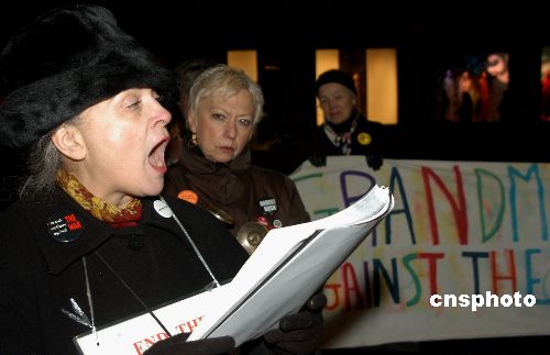 圖:美國祖母反戰(zhàn)團(tuán)集會要求政府結(jié)束伊戰(zhàn)