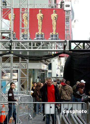 當(dāng)?shù)貢r間二月二十一日,美國洛杉磯好萊塢星光大道已經(jīng)封鎖主要道路,為二月二十四日舉行美國第八十屆電影奧斯卡頒獎典禮作準(zhǔn)備。中新社發(fā) 賈國榮 攝