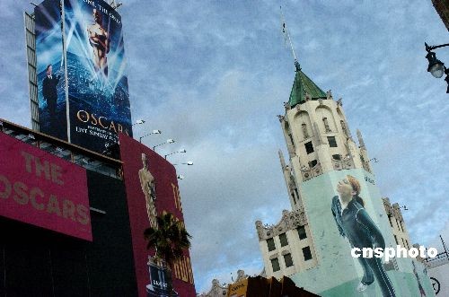 美國第八十屆電影奧斯卡頒獎典禮即將于二月二十四日傍晚舉行,洛杉磯好萊塢星光大道上高豎巨型廣告,希望招攬觀眾人氣。中新社發 賈國榮 攝