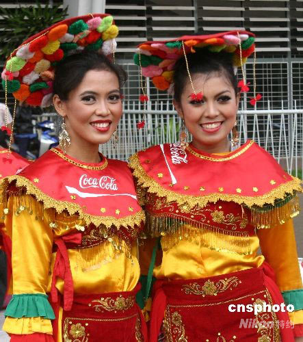 圖:印尼當(dāng)?shù)貗D女盛裝歡迎奧運(yùn)圣火