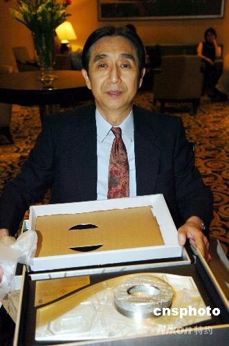 5月6日,中國國家主席胡錦濤抵達(dá)日本,在東京下榻的賓館會(huì)見了多位日本友人及家屬,撫今追昔共敘友情。日本友人西園寺一晃在與胡錦濤會(huì)見后,向眾人展示胡錦濤主席贈(zèng)予的禮物——金屬鳥巢模型。中新社發(fā) 朱沿華 攝