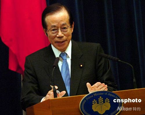 5月7日,中國國家主席胡錦濤與日本首相福田康夫在東京共同會見記者。福田首相表示,日方期待北京奧運會取得圓滿成功,并愿全力支持北京奧運。圖為福田康夫首相在記者會上回答提問。 中新社發 關妍 攝