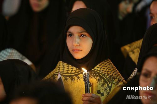 5月15日晚,伊朗民眾聚集在首都德黑蘭巴勒斯坦廣場舉行紀念巴勒斯坦第60個“災難日”活動。以色列1948年5月14日宣布建國。次日,阿拉伯國家與以色列爆發第一次中東戰爭,大批巴勒斯坦民眾為躲避戰爭而逃亡。巴勒斯坦人因而把5月15日命名為民族“災難日”,今年是第60周年。中新社發 原丁 攝