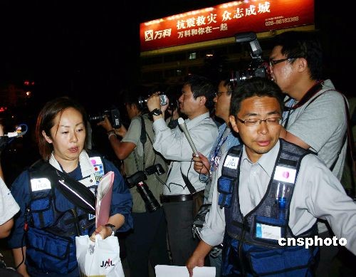 5月20日晚10點58分左右,日本醫療救助隊一行23人抵達成都,他們將很快投入到傷員救治工作中。圖為日本醫療救助隊抵達成都機場。