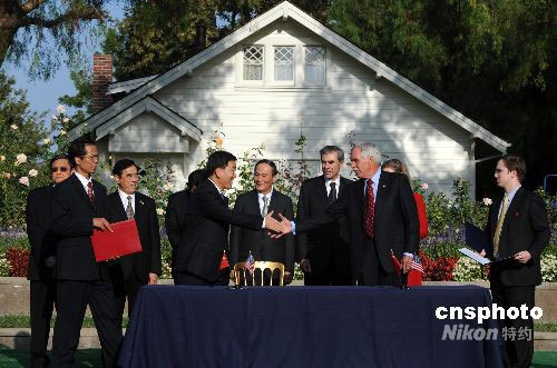 第十九屆中美商貿(mào)聯(lián)委會議九月十六日下午在美國加州尼克松圖書館結(jié)束,經(jīng)過一天緊張談判后,中美雙方達成多項協(xié)議。中新社發(fā) 張煒 攝