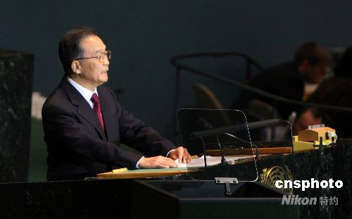 圖:溫家寶在千年發展目標高級別會議上發表演講